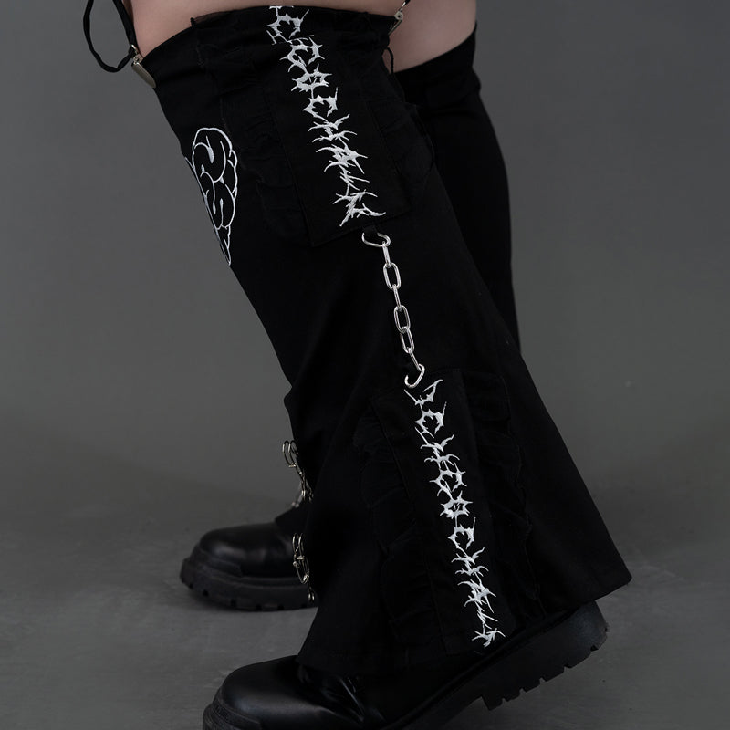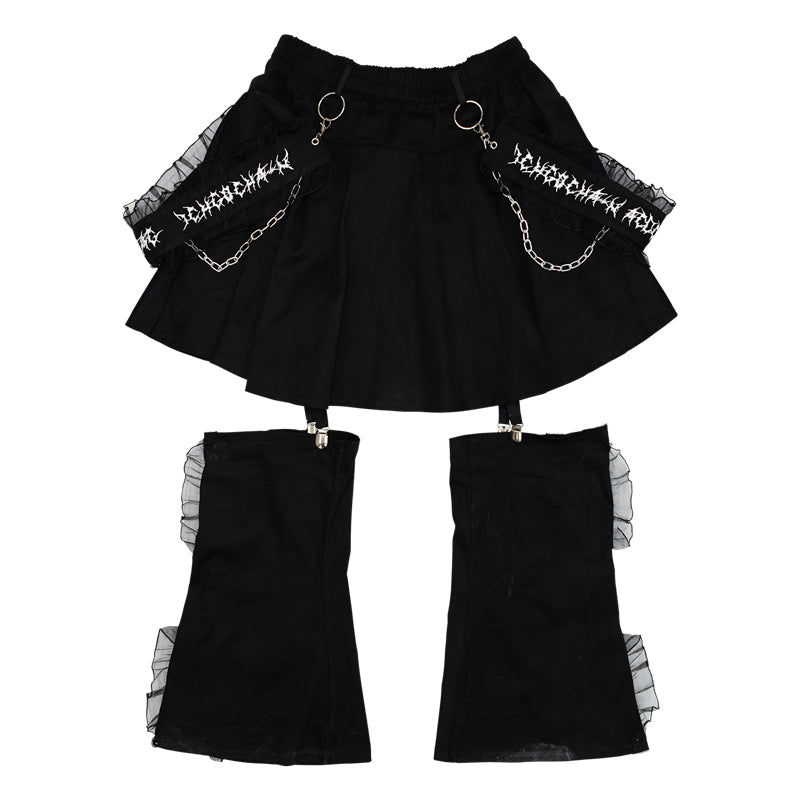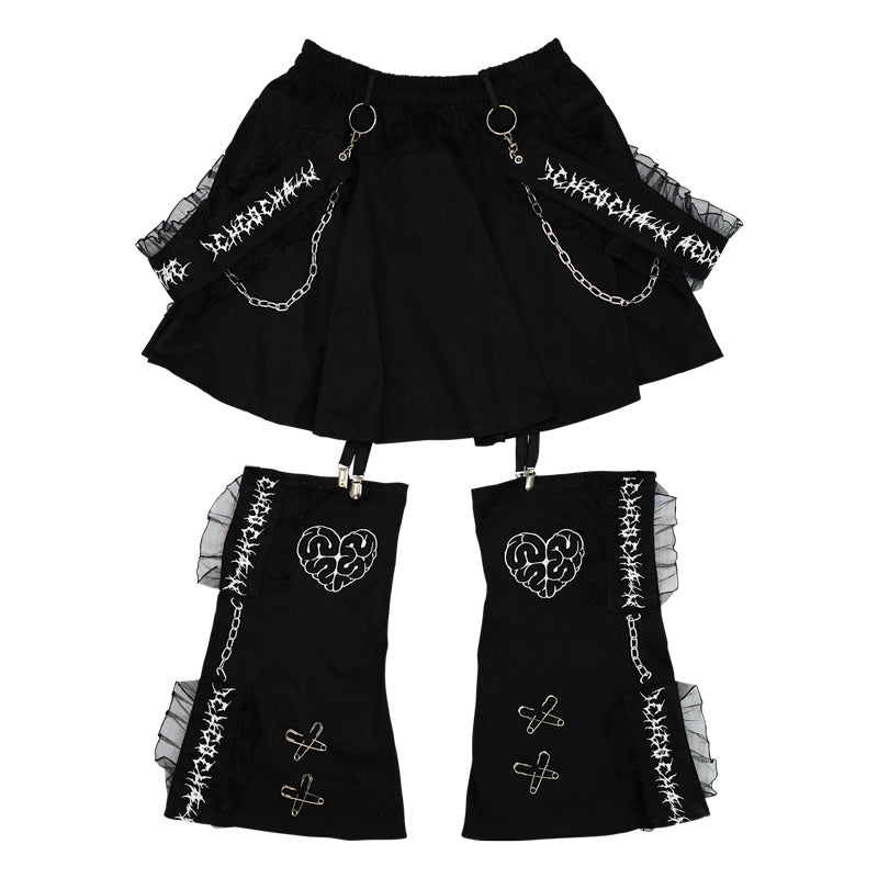 Short skirt that features attached leg warmers with striped details is perfect for those who love the “guro kawaii” vibe.