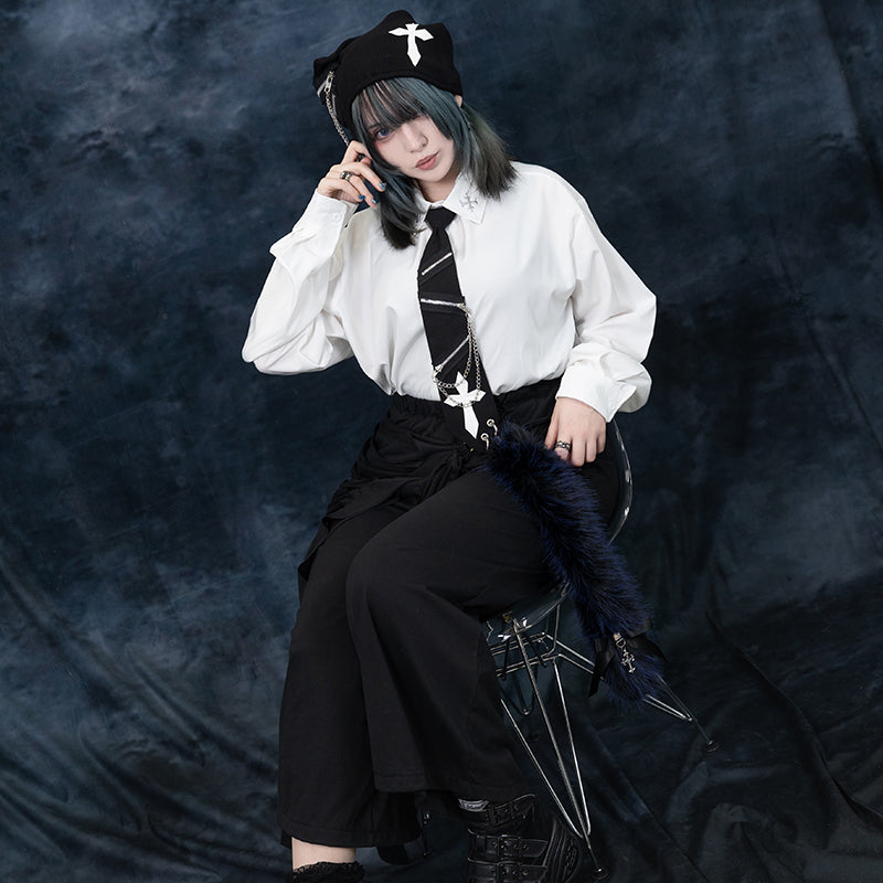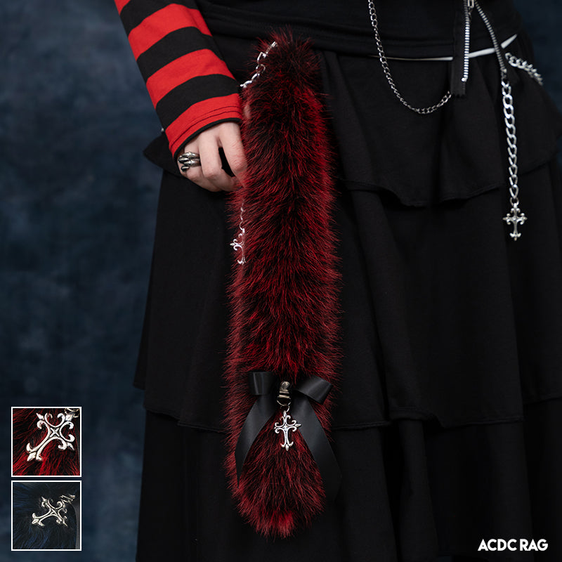 A fluffy faux fur tail that mixes Y2K vibes with a punk cross design — bold and playful in equal measure!