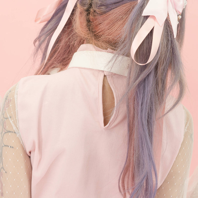 Punk elements like front embroidery and small chains add an edgy touch.
