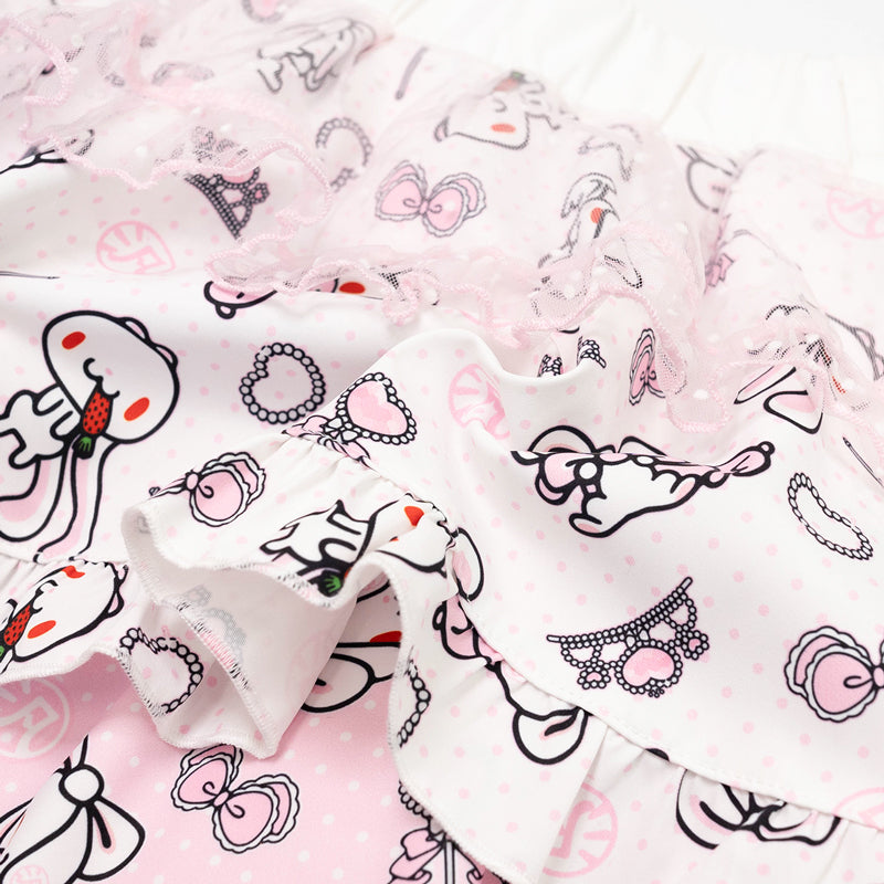 This adorable skirt features delicate lace and ribbon accents for the ultimate cute look. The all-over Hanyou Usagi print is a total head-turner! Plus, the elastic waistband ensures a comfortable, perfect fit for all-day wear.