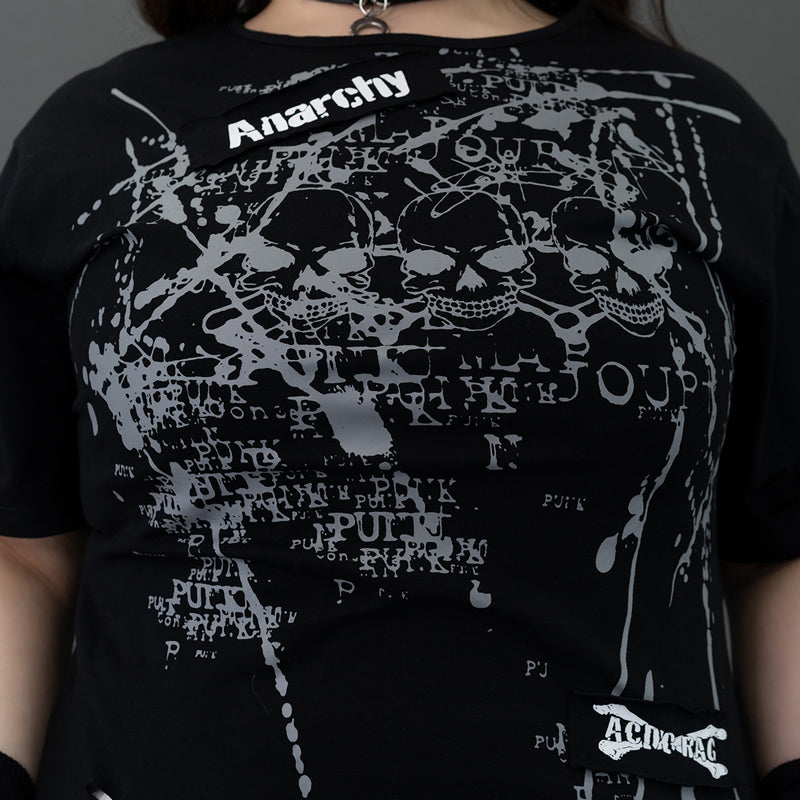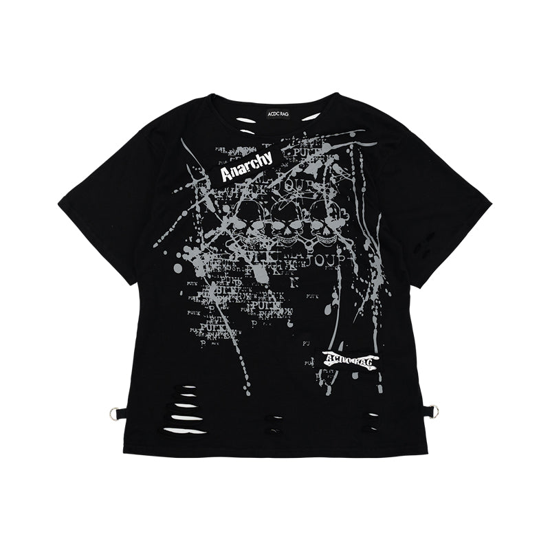 【ドクロがインパクト抜群】懐かしい雰囲気のパンクアイテムをリバイバル! フロントプリントのドクロがインパクト抜群な一着◎