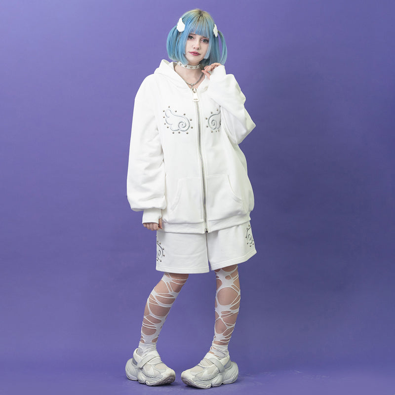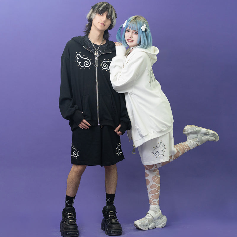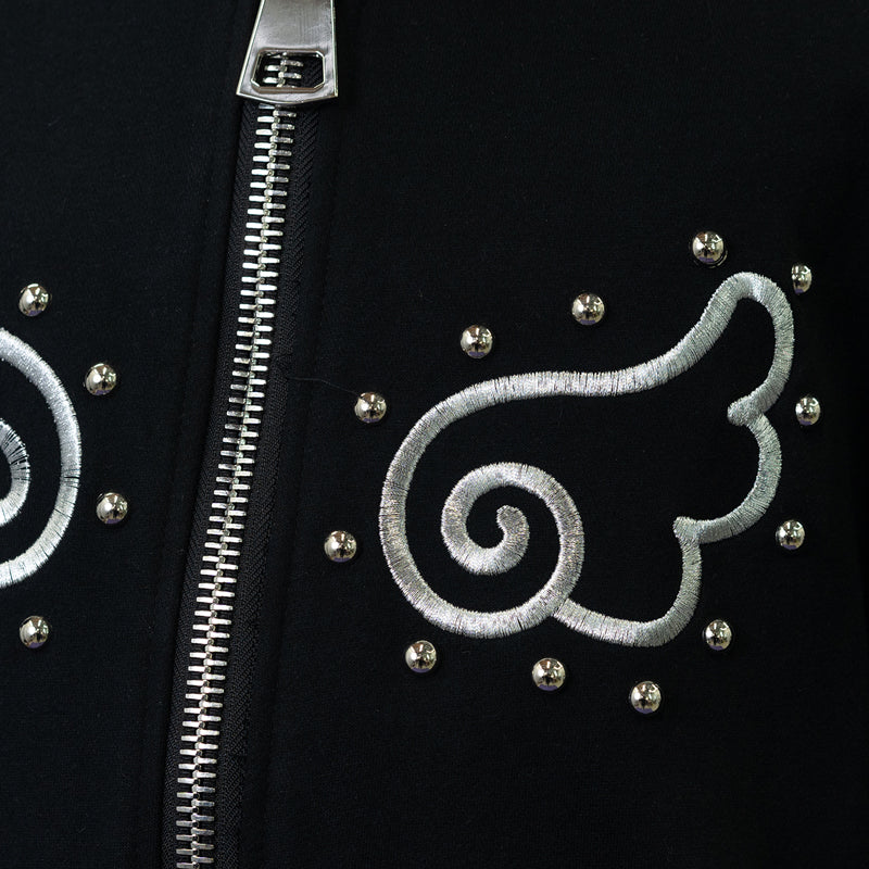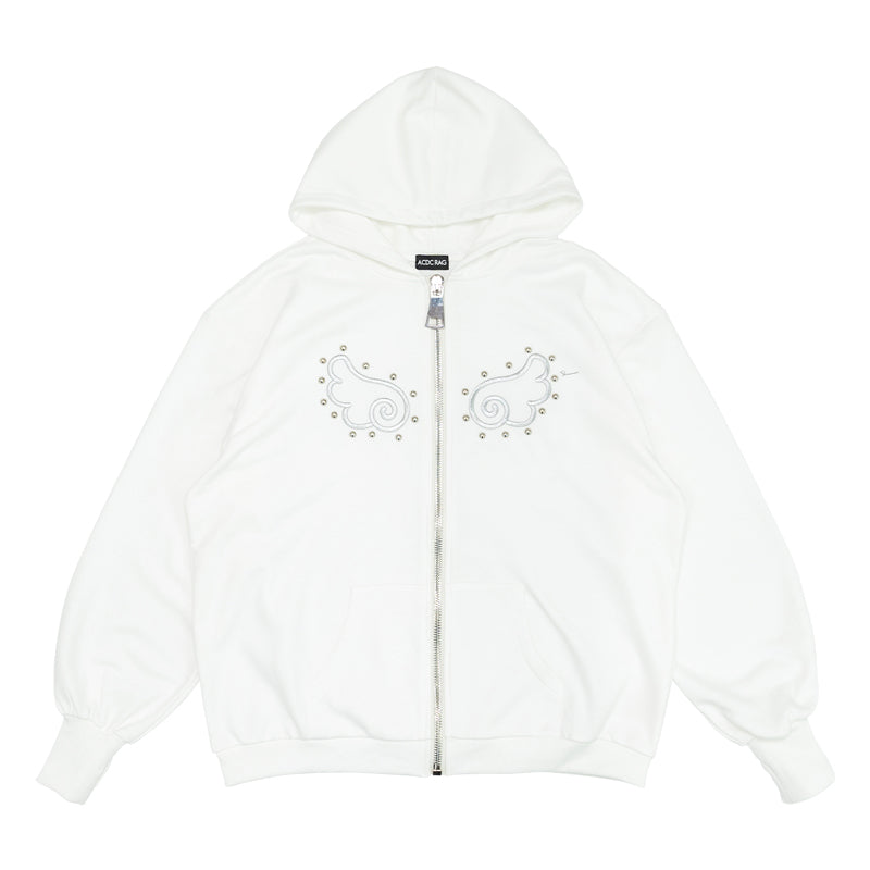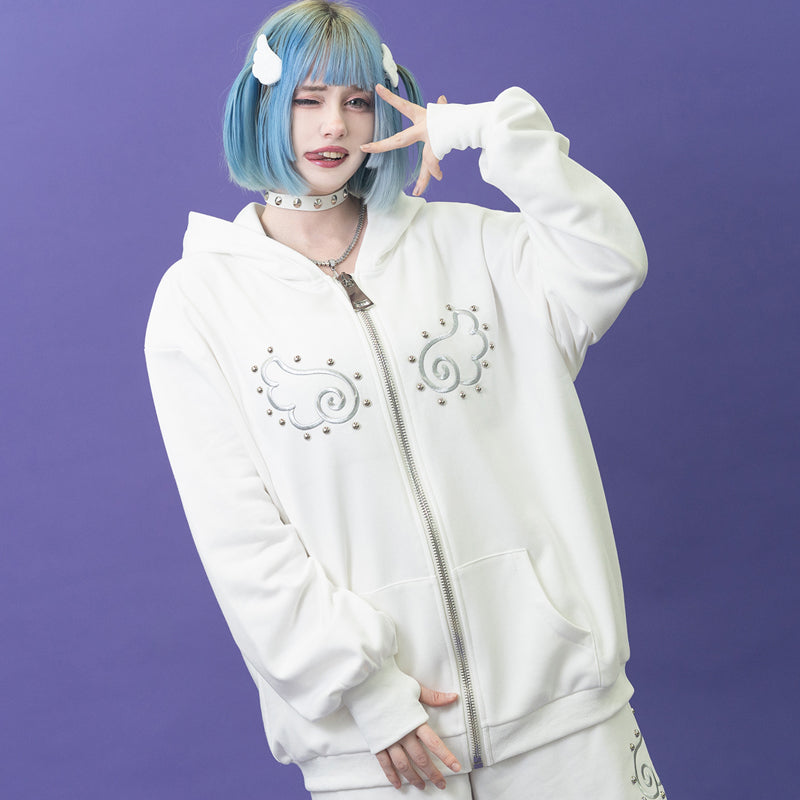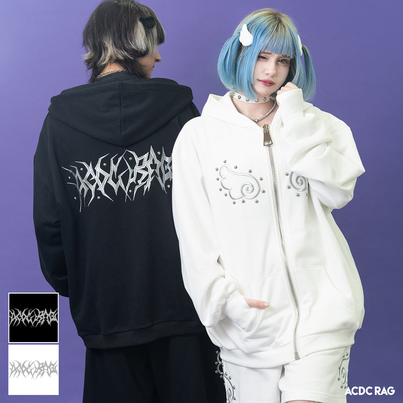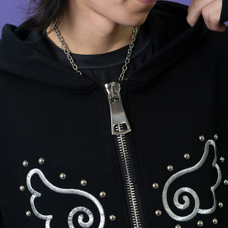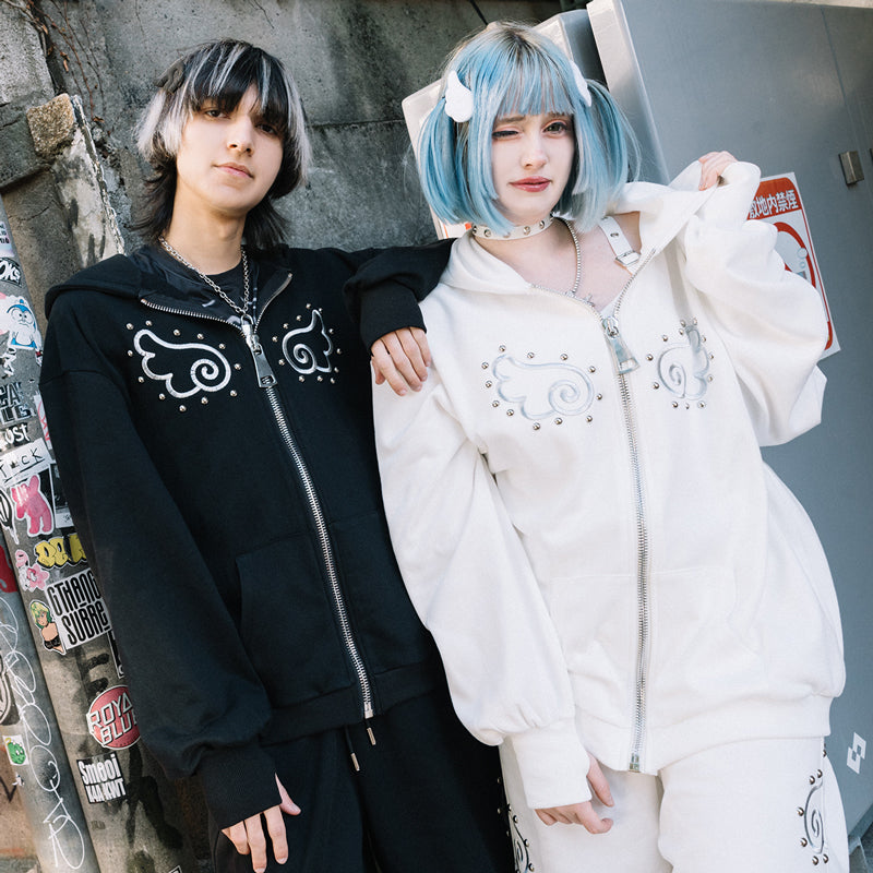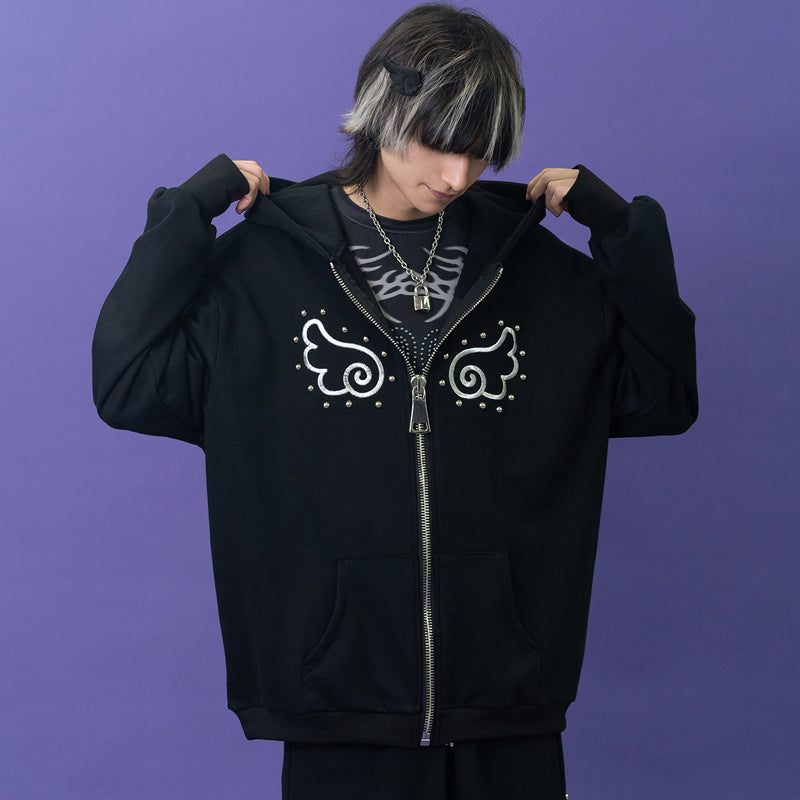 【デザイン】存在感のあるBIG ZIPが目を引く、パンク×天使モチーフのジップパーカー!