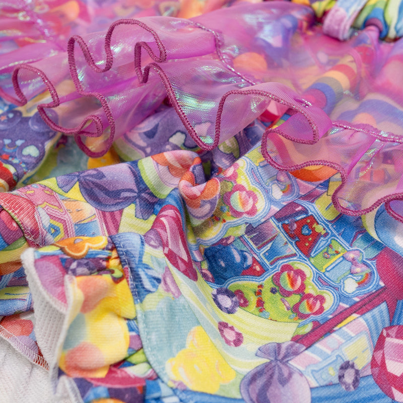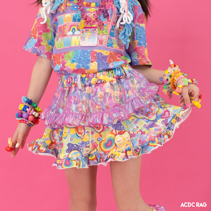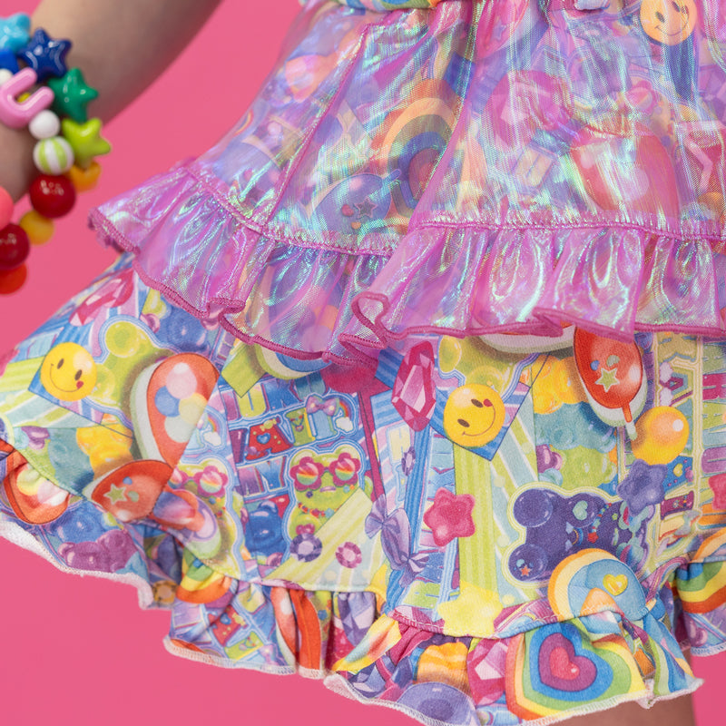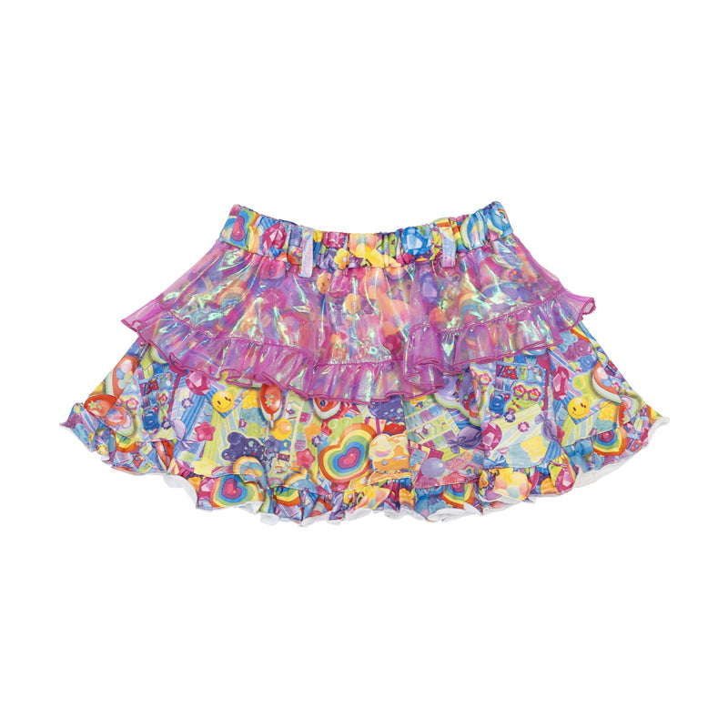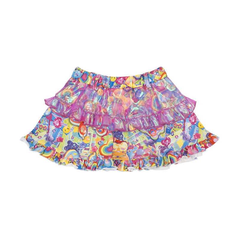 【ディテール】デザインそのままキッズサイズにしたスカートです♪キラキラ素材のオーロラフリルがポイントです!ウエストゴムなのでフィット感抜群◎