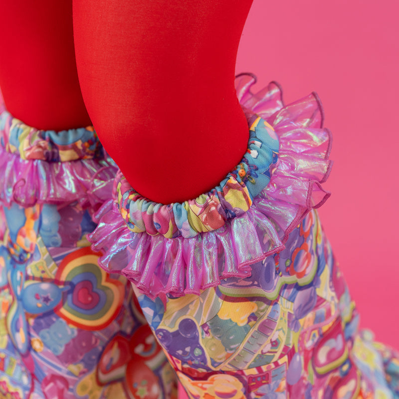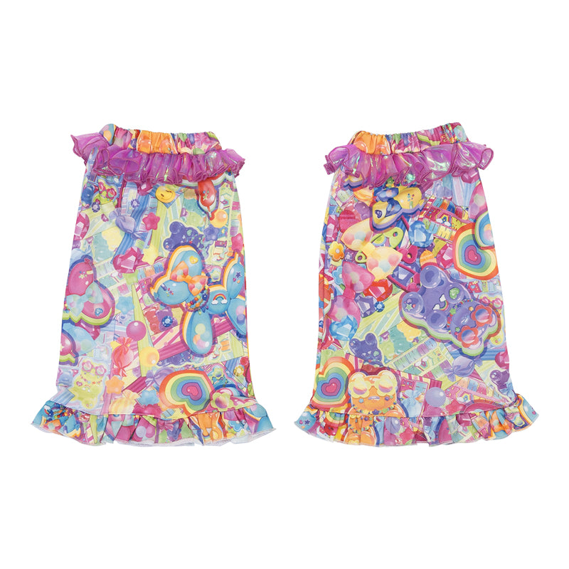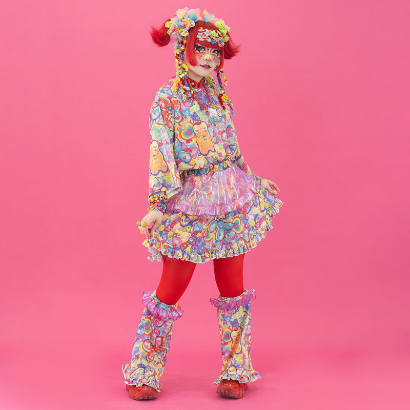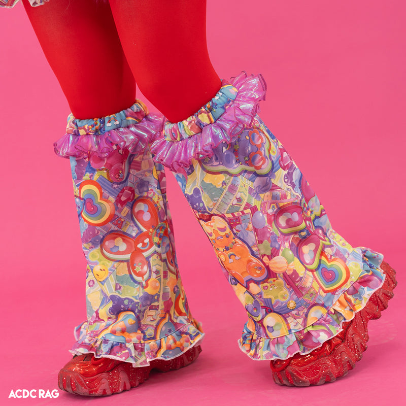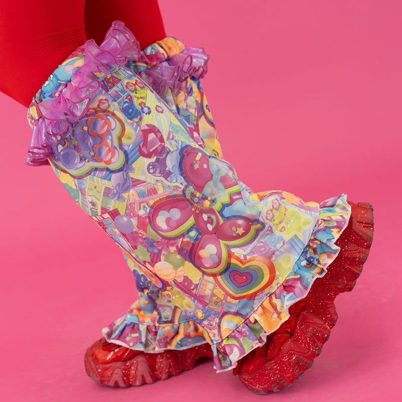 【ディテール】カラフルキュートな総柄レッグウォーマー♪キラキラ素材のオーロラフリルがポイントです!履き口はゴムになっています◎
