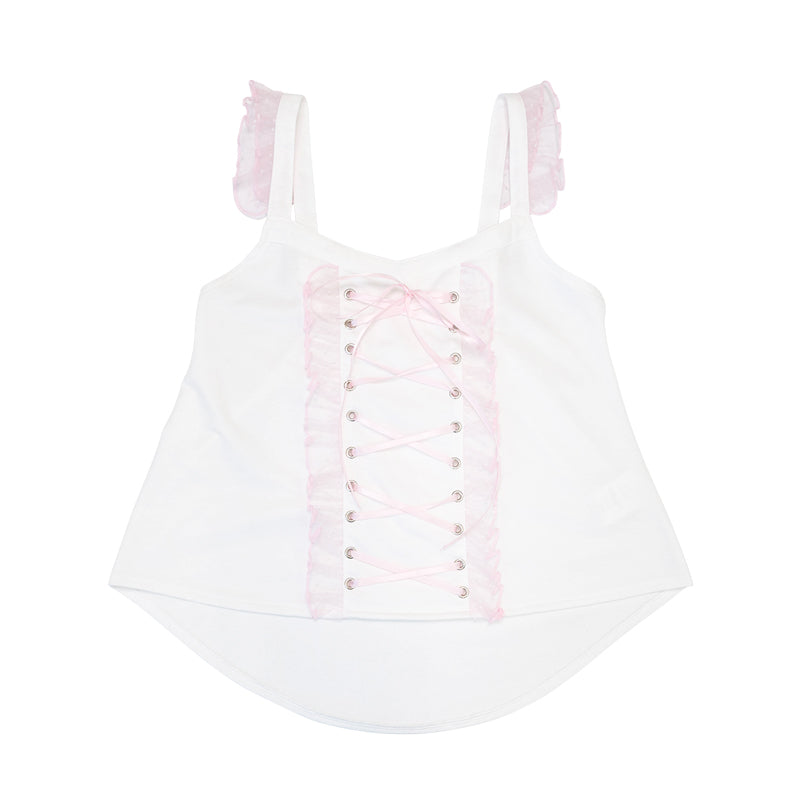 【ディテール】フロントのレースに、バックの刺繍がキュートなキャミソール!ショルダーの長さは調整可能です♪ さらっとした薄手の生地感でインナー使いに最適◎